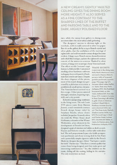 gallery, lit by a 1940s French crystal and silver globe, that the