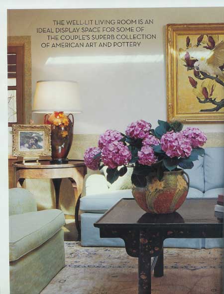 That painting hangs in the cavernous yet intimate living room, illuminated